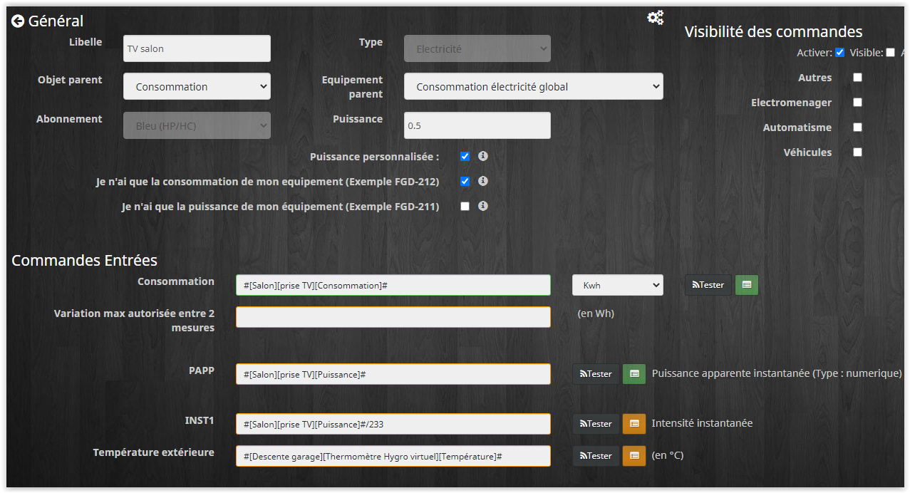 Pour commencer voilà ma configuration actuelle dans le plugin conso :