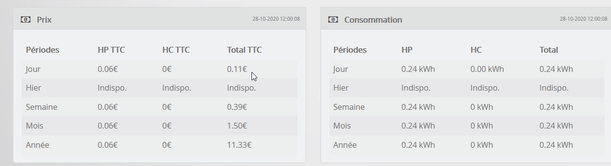 Pour ma part, je ne souhaite pas faire la gestion des factures et coût dans le WES. Je préfère le faire dans Jeedom qui aura accès à plus d’info que le wes. Dans mon cas, le wes ne sert qu’a remonter les infos téléinfo, Pince ampé, et autres compteurs.