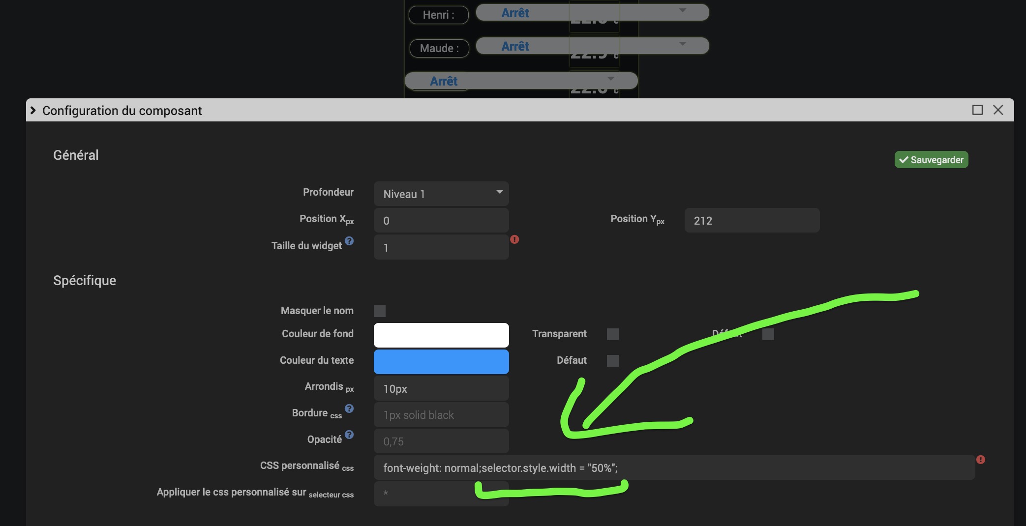 Voir la Configuration essayé du composant :