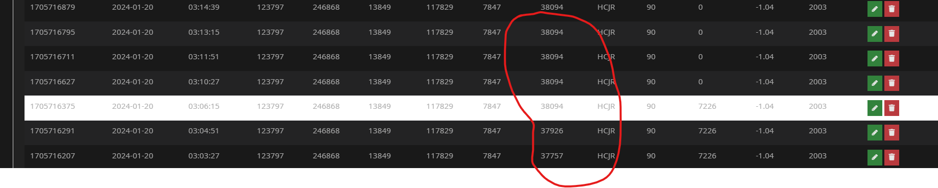 Le mieux est de corriger une ligne ,celle qui a la valeur mini de la journée pour la colonne hchc3 de mettre l’index à jour avec la consommation qu’il faut : Nouvelle valeur = Valeur mini de la journée - la conso à compenser.