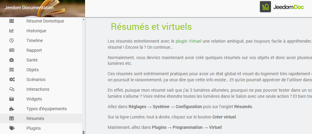 Le core intègre les virtuels de résumés qui permettent de connaitre l’état et d’agir sur un groupe d’équipements.
