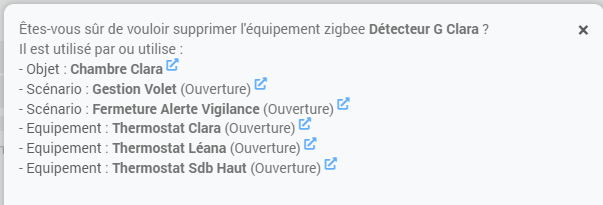 je prends en exemple un simple détecteur d’ouverture de fenetre qui si je venais à le supprimer du plugin zigbee m’affiche cela: