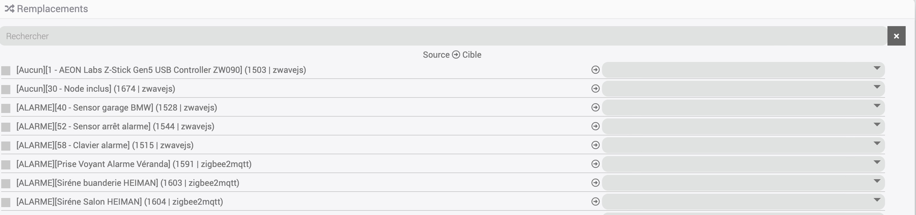 Dans la colonne de droite tu cherches le nouvel équipement Jeezigbee, théoriquement si tu as suivi c’est le même NOM sans le OLD.