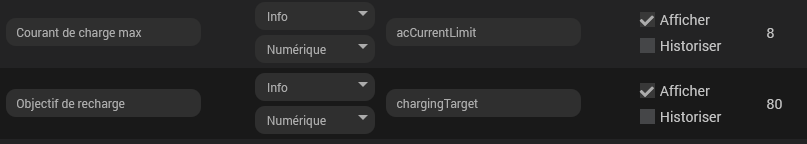 Tu devrais alors voir apparaitre 2 nouveaux champs sur la gauche : objectif de charge et courant de charge. S’ils ne sont pas grisés, c’est que ton véhicule accepte ces configurations !