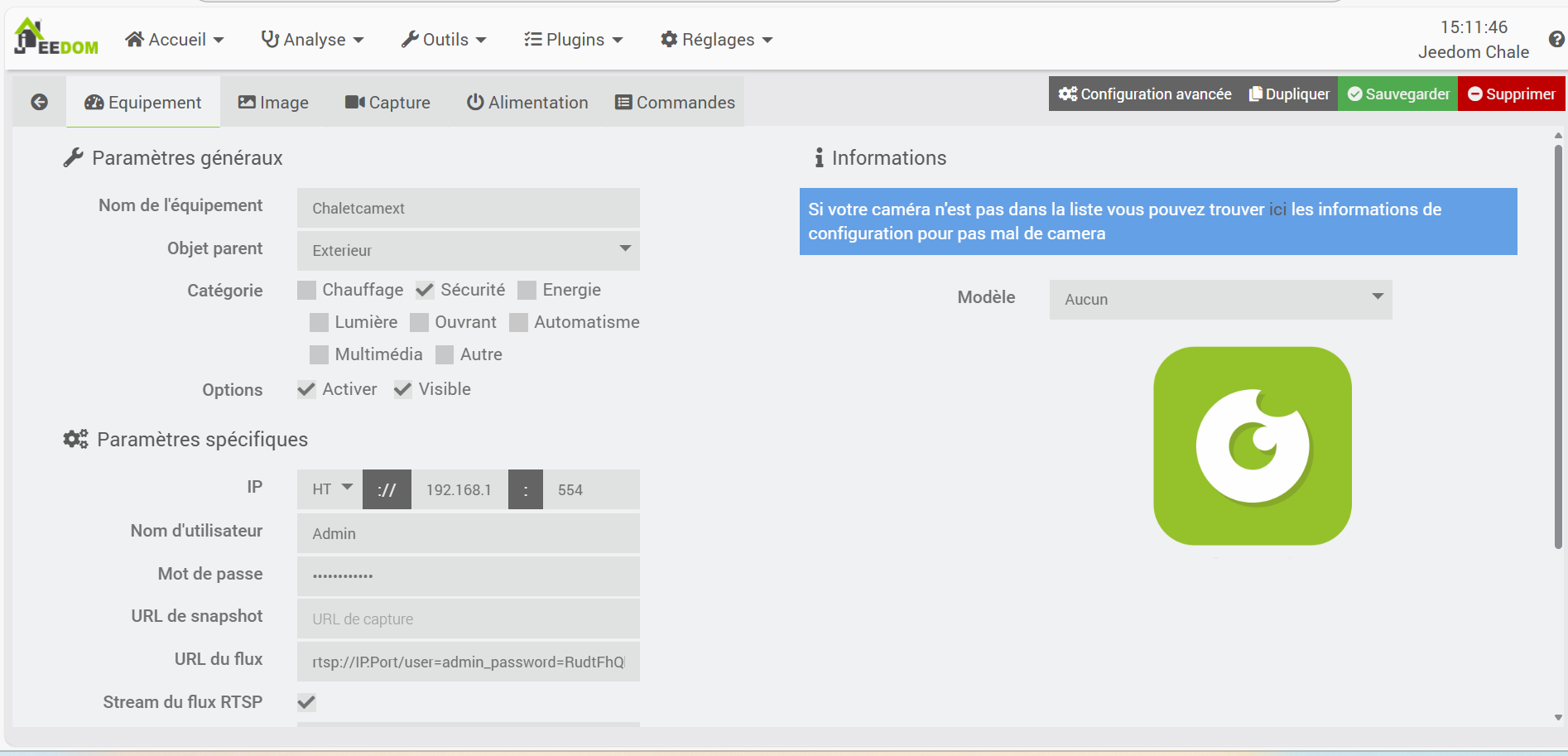 Oui j’y accede bien j’e dispose de l’URL flux Rtsp , c’est comme ca que je l’ai integrée a jeedom . Tout marchait trés bien jusqu’a l’apparition du message