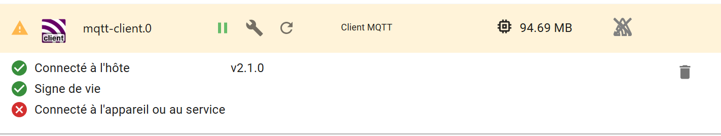 Je débute en MQTT. J’ai ajouté MQTT client à iobroker,mais il reste avec le warning :