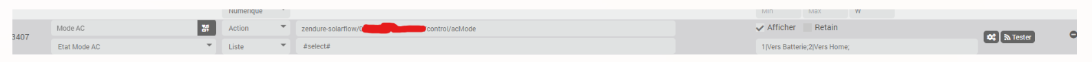 J’ai créé une action coté Jeedom JMQTT reprenant le chemin du control acmode (ioBroker/zendure-solarflow/0/sdfdfs/sfdfsfrt/control/acMode) et lui injectant la valeur 1 ou 2.