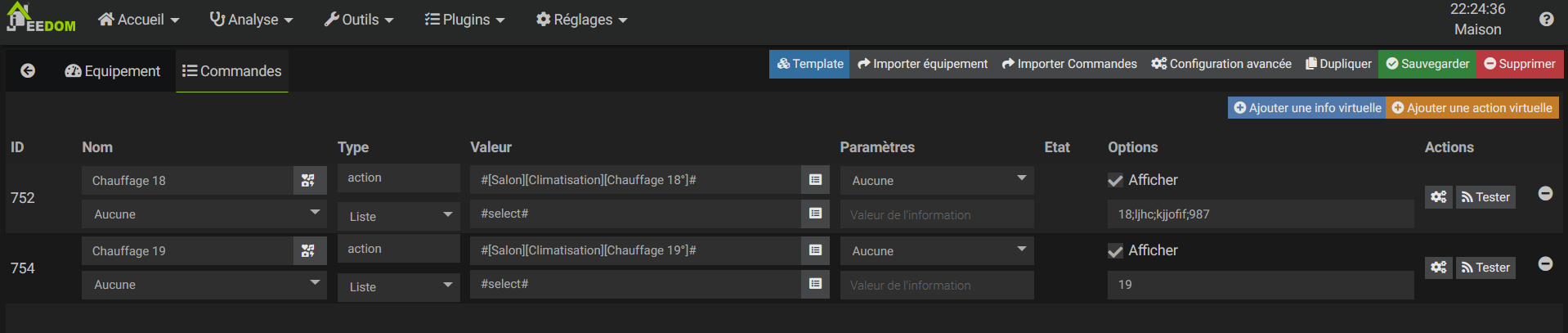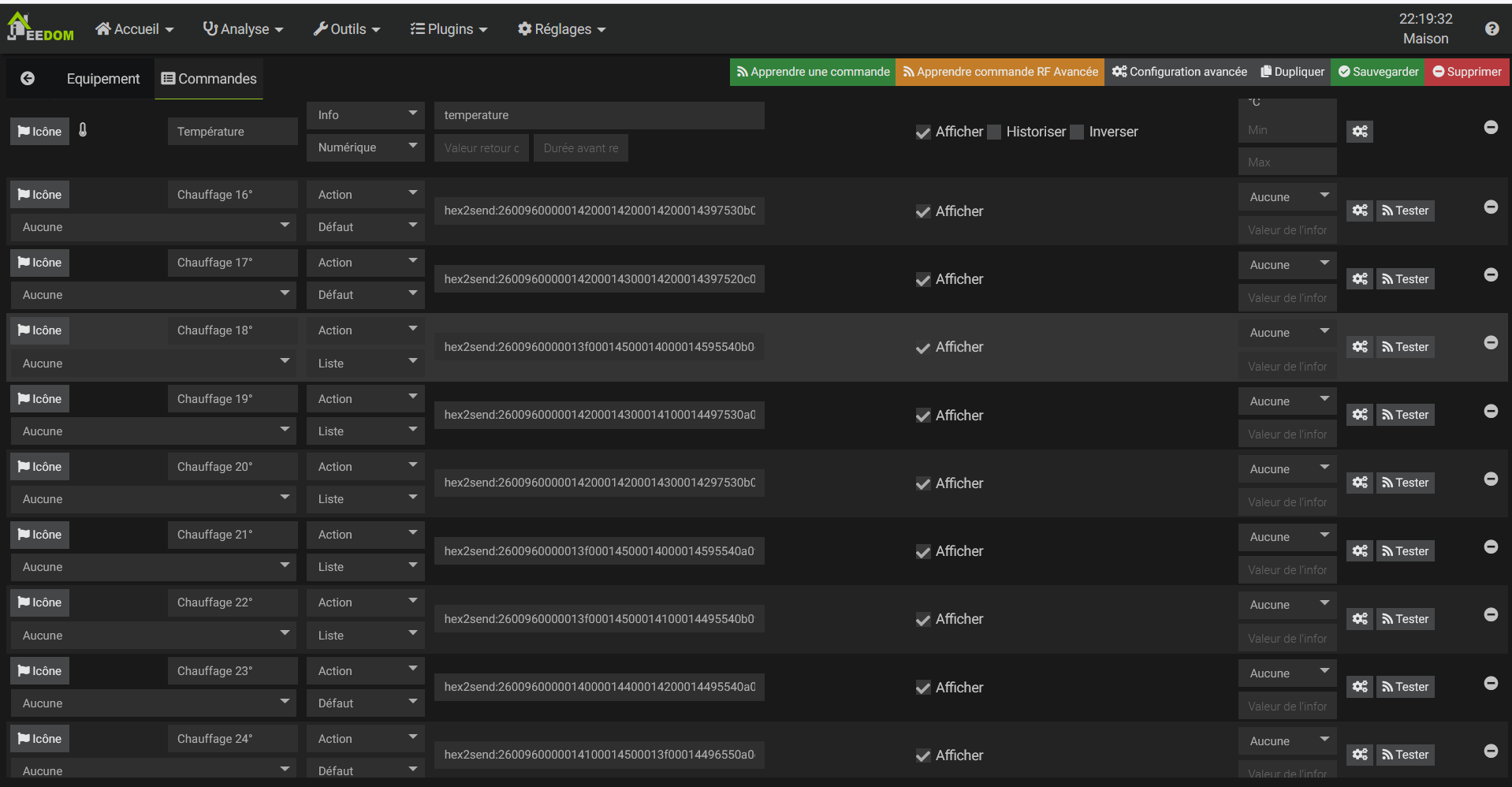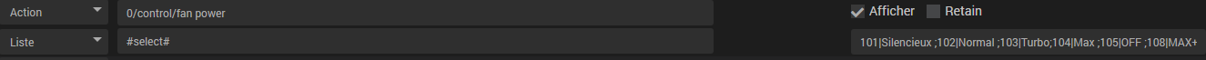 Donc à l’exécution le select va prendre hex2send:blabla en valeur, ensuite la commande chauffage est appelée et elle envoie la valeur de #value# qui devrait obtenir la valeur du #select#