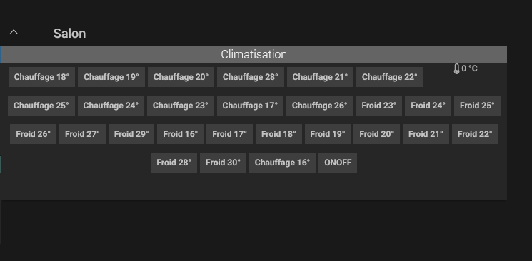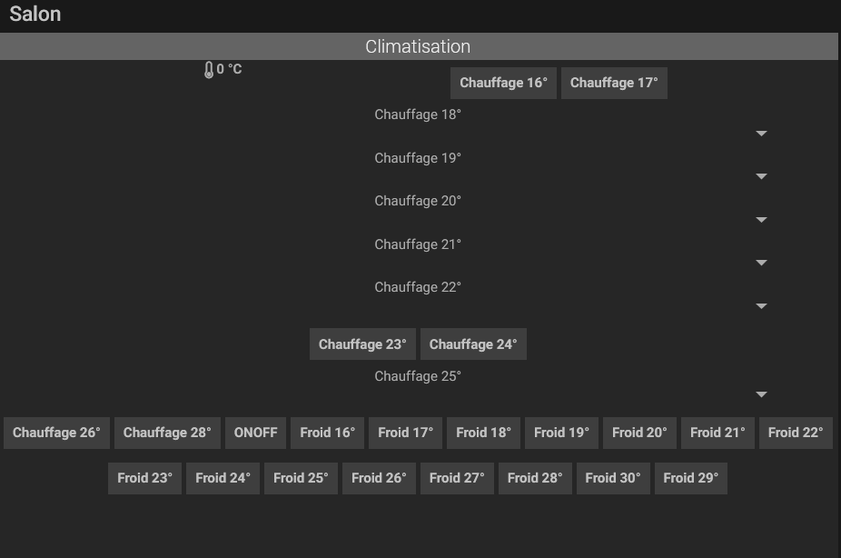 Dans l’idéal j’aimerais avoir un sélecteur de température (comme dans le plugin daikin online ctrl) : un + et un - avec la température sélectionnée…