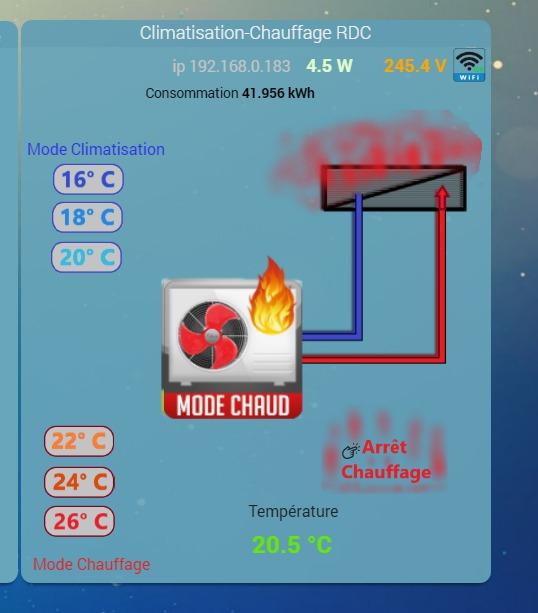 Je vous post une capture d’écran de mon widget moche fonctionnel, celui de Daikin online ctrl et le code que l’ia m’a pondu…