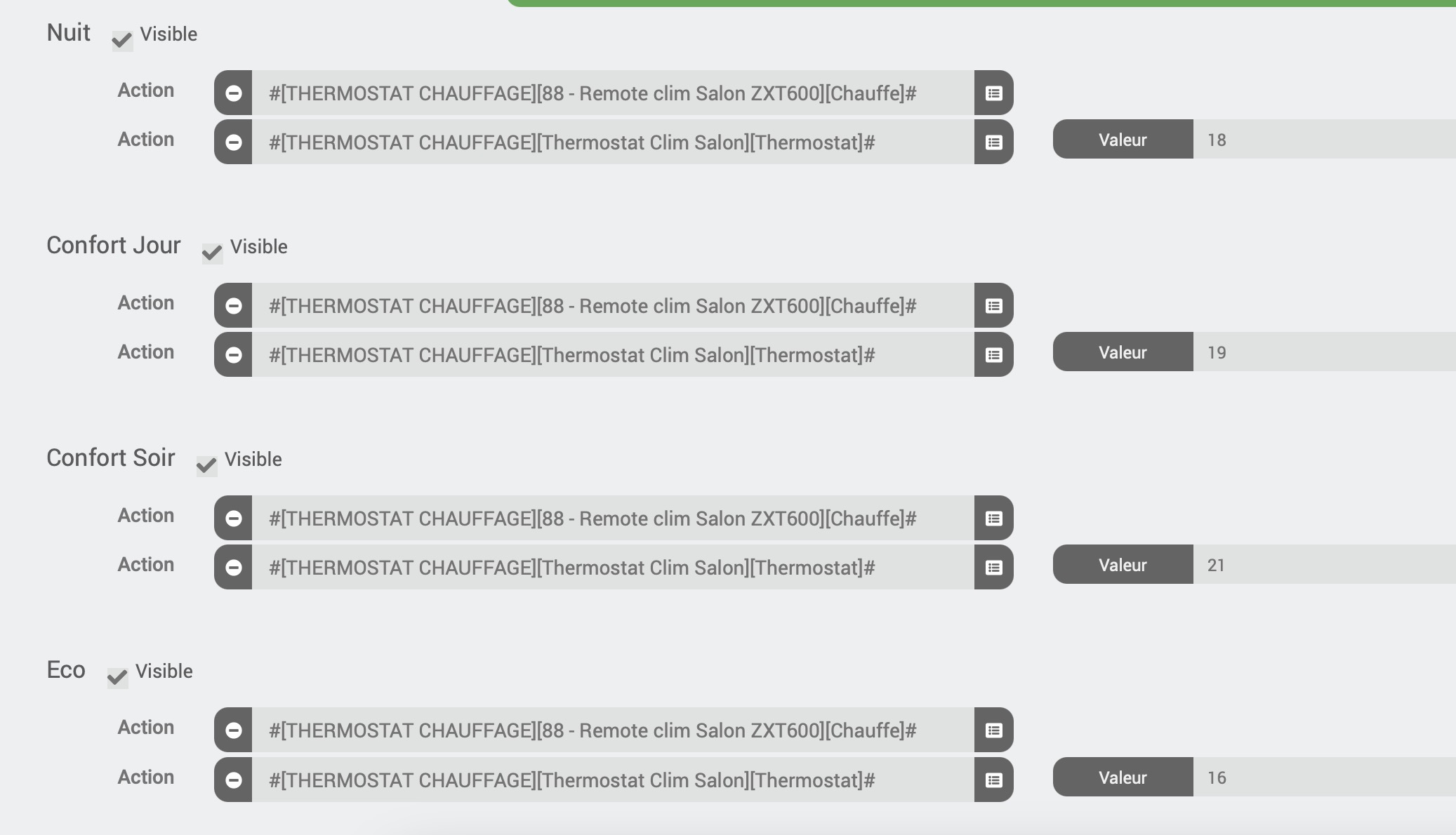 Est ce que via des scénarios provoqué par ce même virtuel serait possible? A chaque clic sur une température lance un scénario (un pour chaque température et mode)?