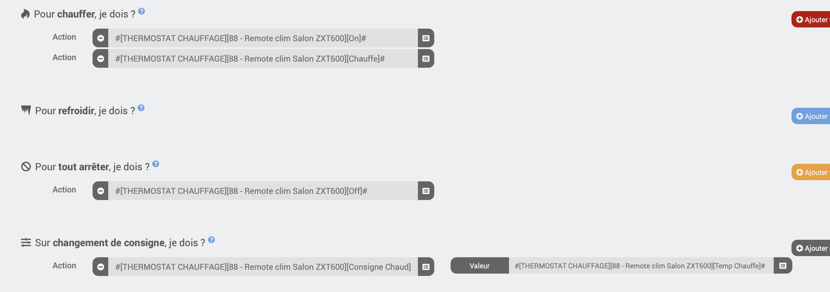 Je recherche depuis un moment maintenant à faire au minima un widget avec une liste déroulante « chauffage » avec les différentes températures et une autre type « refroidissement » avec ces autres action… Mais je n’y arrive pas.