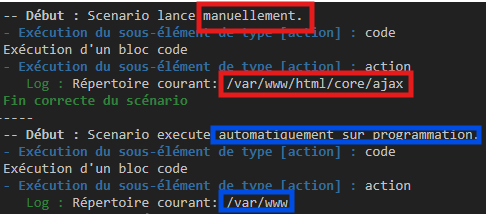 Ce log indique le répertoire de travail de base quand un scénario s’exécute de façon programmé.