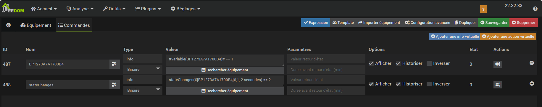 Pour la commande state, j’ai une réaction lors de la création du virtuel, après plus rien.