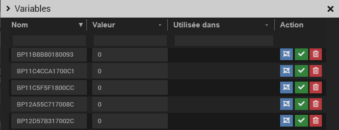 En installant le plugin, mes boutons poussoir se retrouvent dans les variables de Jeedom et dans la documentation il est expliqué que je peux utiliser les variables pour déclencher des scénarios.
