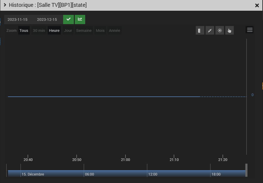 0470|[2023-12-15 21:17:24]INFO : Evènement sur la commande [Salle TV][BP1][BP1] valeur : 0