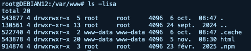 Bsr, messages de log sans conséquences mais pour ne plus avoir ces warnings , en ssh j’ai créé un dossier .cache sous /var/www et mettre les bons droits avec chown et chmod