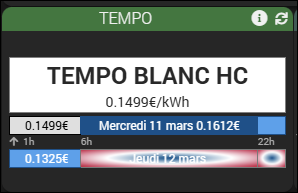 Et pourtant, le widget ressemble à ceci, avec le texte « Date de fin de validité des prix Tempo dépassée » :