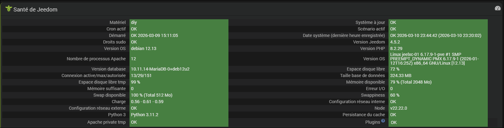 Sur ma machine Jeedom de prod dont voici la page santé :