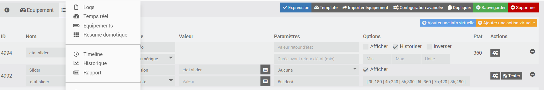 → donc tu demandais à afficher 180 pour envoyer à la commande état 3h, or ta commande état du slider est de type numérique … elle ne pouvait pas accepter 3h …