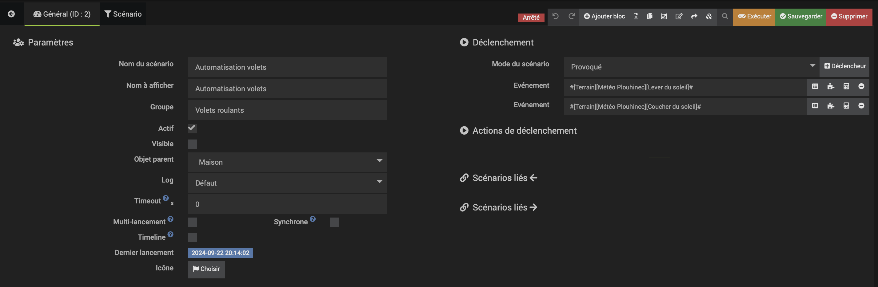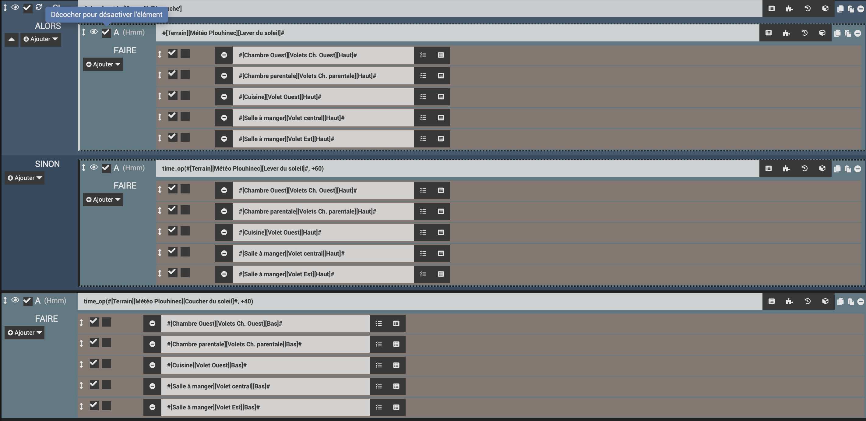Donc dans votre scénario laisser les déclencheurs lever et coucher