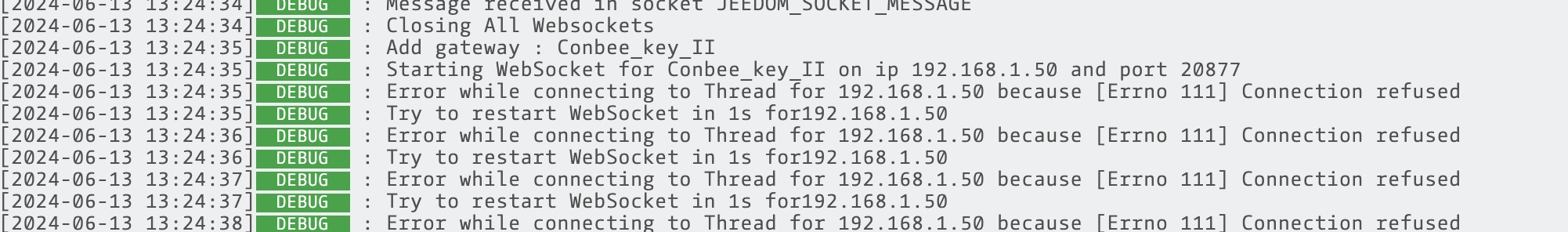 [2024-06-13 12:48:51] DEBUG : Try to restart WebSocket in 1s for192.168.1.50