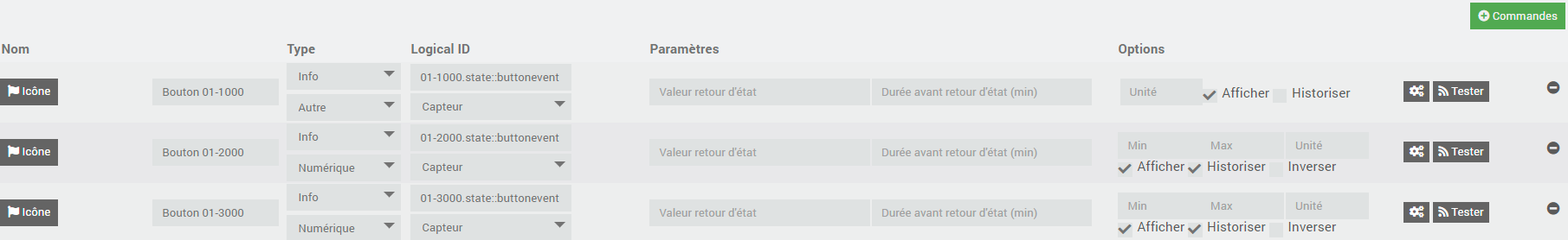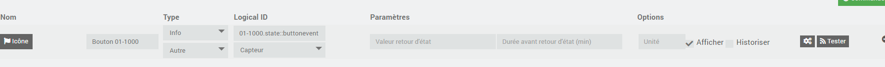 puis on teste le code retourné pour savoir quel type d’appui a été fait : SI #[Programmation][TRADFRI remote control ][Bouton 01-1000]# == 1001 ALORS …