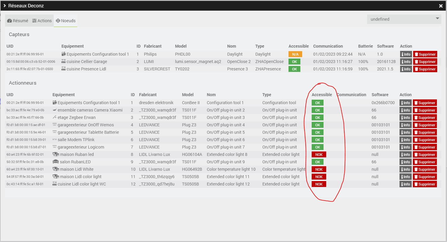 Bonjour, j’utilise une ampoule et un capteur de presence Lidl, le probleme est que toute la famille avait pris l’habitude d’éteindre la lumiere a l’interrupteur, je voulais savoir comment utiliser l’info « NOK » fourni par le plugin Deconz (CF Image) afin de changer le staut de l’ampoule si celle ci n’est plus alimentée, en plus cela pourrais peut etre etre utile pour d’autre trucs voir avec d’autre plugins.