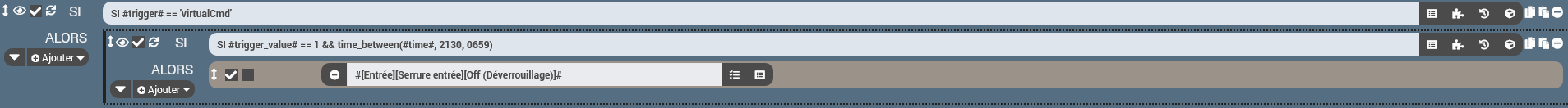 Ensuite il faudra vérifier si c’est quelqu’un qui arrive donc si la valeur de la commande vaut 1 => #trigger_value# == 1