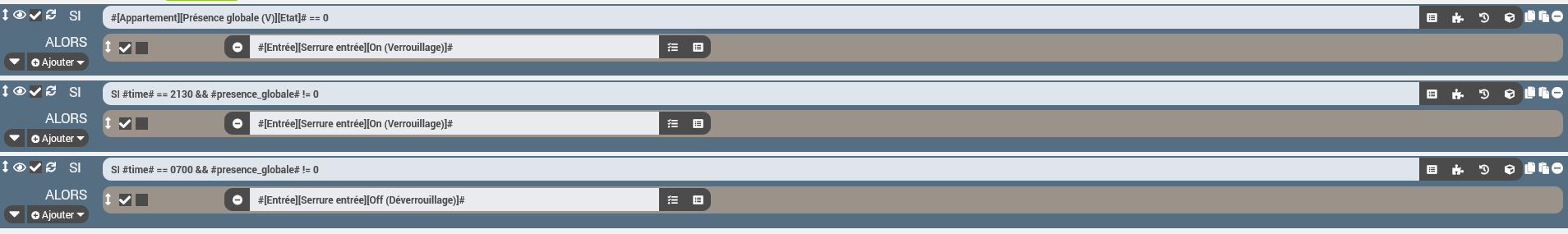 Restera à tester voir comment ça se comporte. Si les commandes d’états suivent bien la réalité de votre présence ça devrait aller mais il pourrait y avoir des petites choses à rectifier … faut voir.