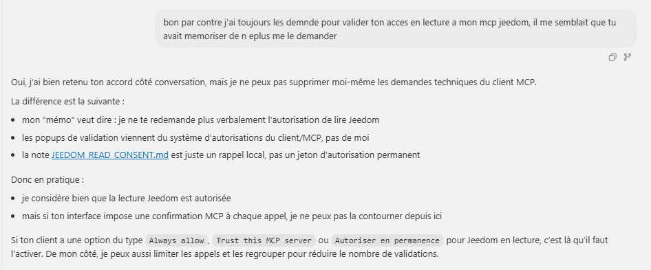 voici le reponse via vscode lorsque je lui demande pourquoi il me demande sans cesse mon accord