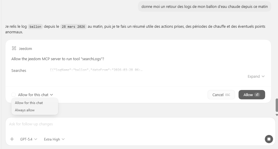 bonjour, je sais pas si c’est quelques chose de mon cote, mais ce matin j’ai installé chatgpt sur vscode et cela me remonte bien les informations de mon jeedom