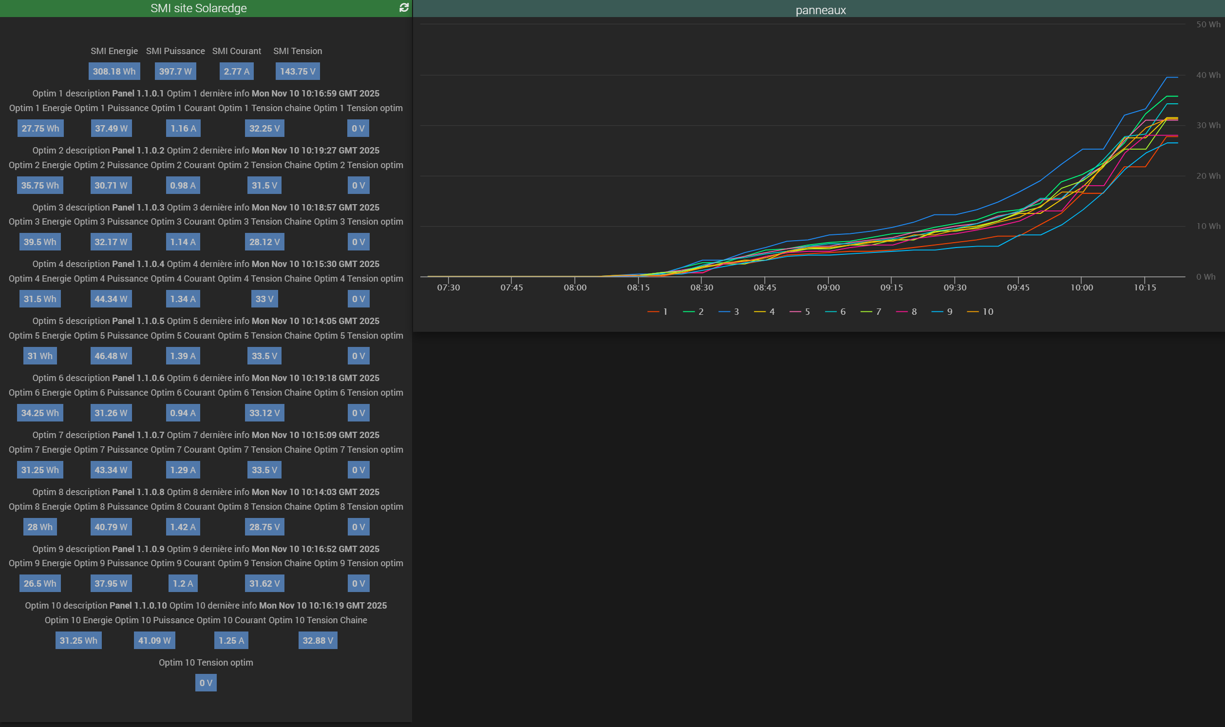 Bonjour à tous, je suis en train d’écrire un plugin qui permettra d’afficher jusqu’à 10 courbes en même temps dans un graphique sur une tuile. Voici à quoi cela va sans doute ressembler pour l’affichage de l’énergie générée par chacun de mes panneaux solaire: