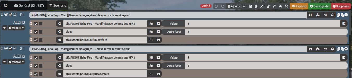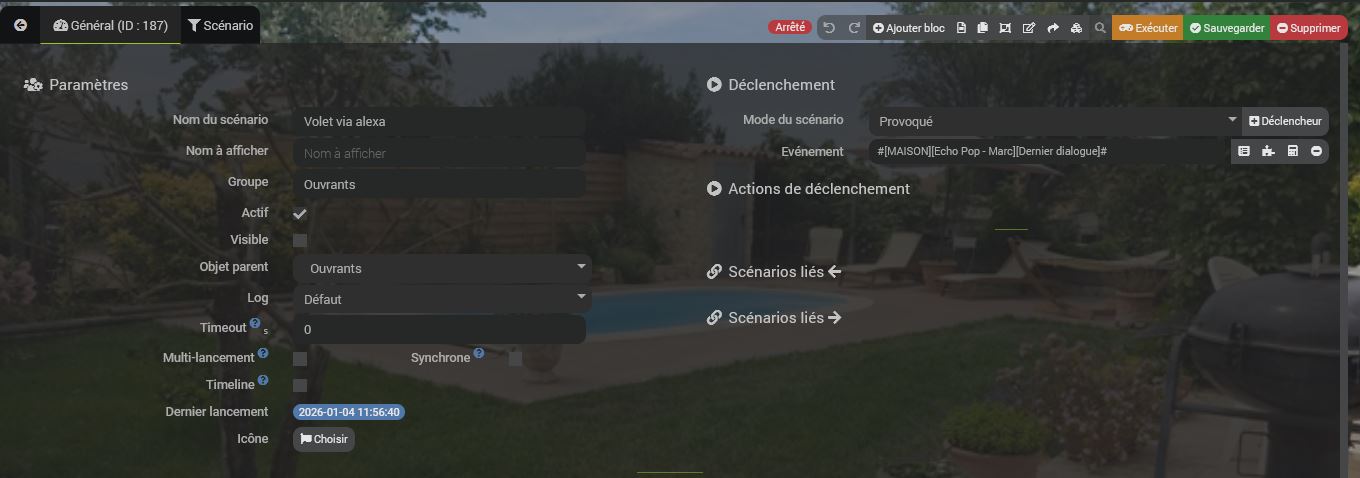 J’espère que @Limad44 passera par là pour me donner peut-être une solution plus viable que la mienne et qui m’aurais échappé car même en lisant la doc à plusieurs reprise j’ai compris cette solution pour commander des actions via alexa.