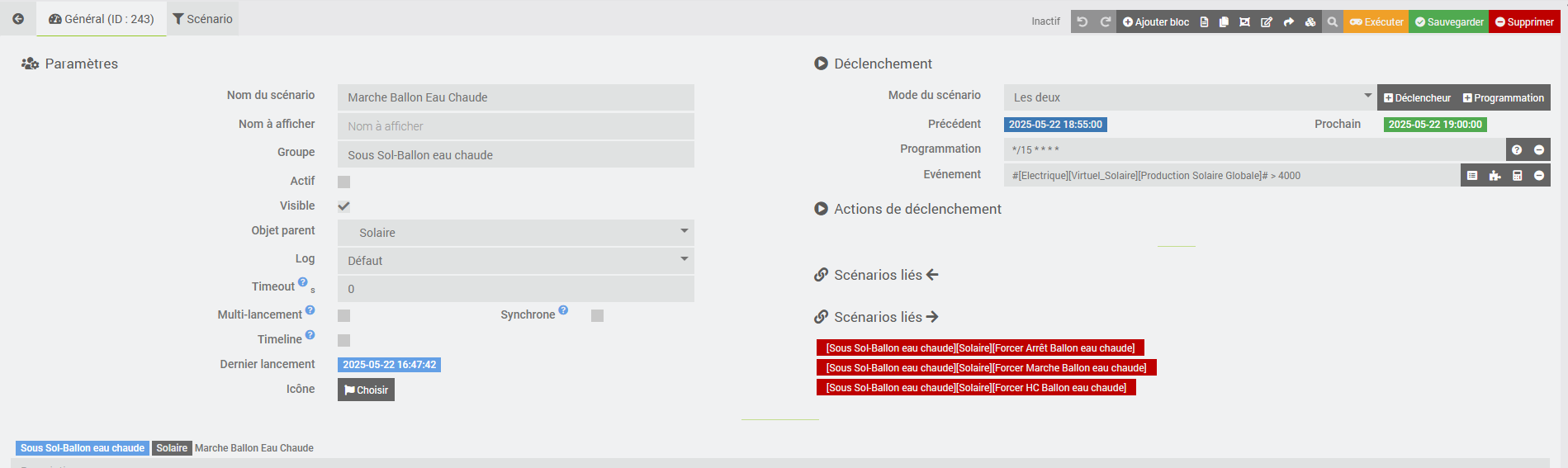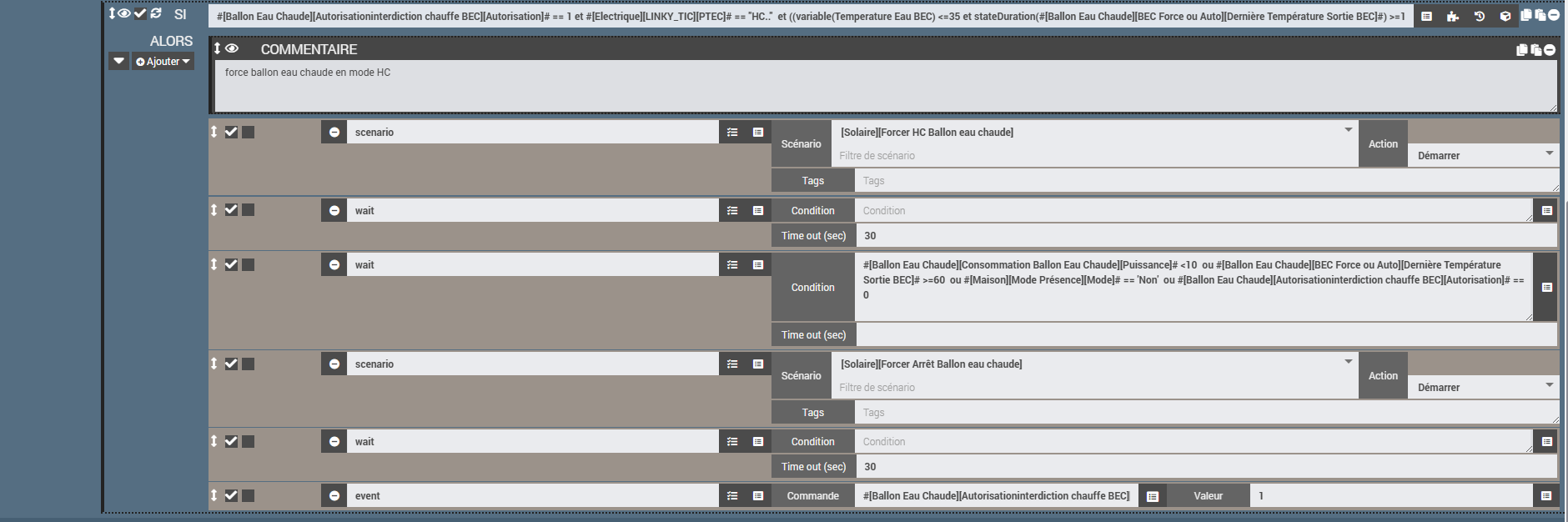 je veux juste tester la mise en marche de mon ballon d’eau chaude mais par la suite je voudrais pouvoir le gérer comme je le fait via mon scenario en fonction de