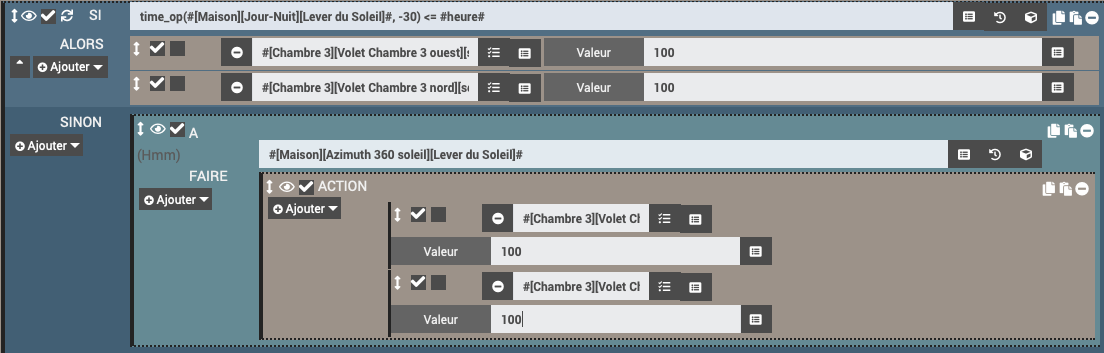 Toujours sur mon scénario réveil, et profite de ce topic pour solliciter votre aide à nouveau mais cette fois-ci au sujet de mes volets.