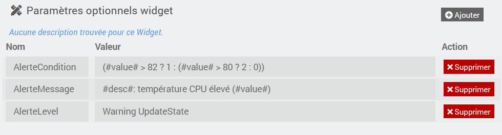 Donc j’utilise ces espaces dédiés à l’affichage comme conteneur d’infos utiles à la vérification/notification/traitement etc. Cela fonctionne très bien (depuis 2 ans) mais c’est tout de même gênant. Je remarque que l’onglet « Alertes » est très dédié aux batteries mais pas utilisable pour des traitement plus évolués.