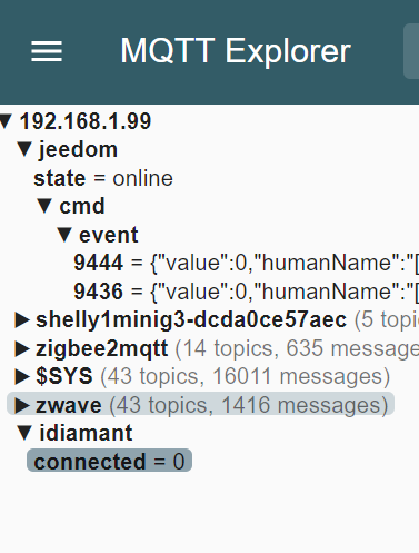 Le topic iDiamant est bien vu par MqttExplorer
