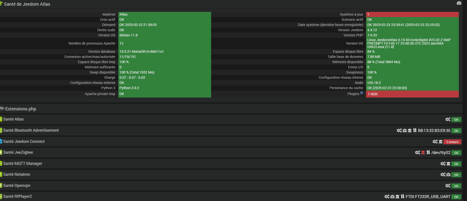 Je suis sur ATLAS, j’ai migré vers Débian 11 et réinstallé ma sauvegarde.
