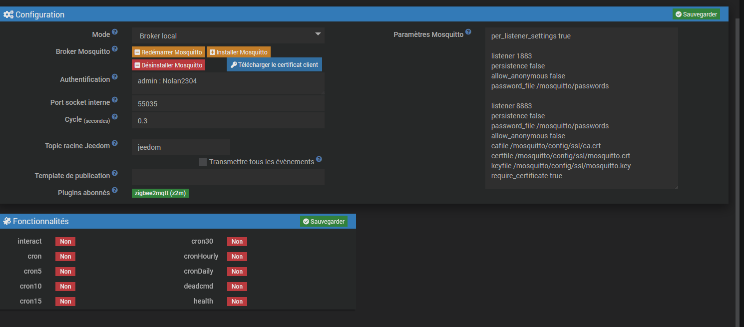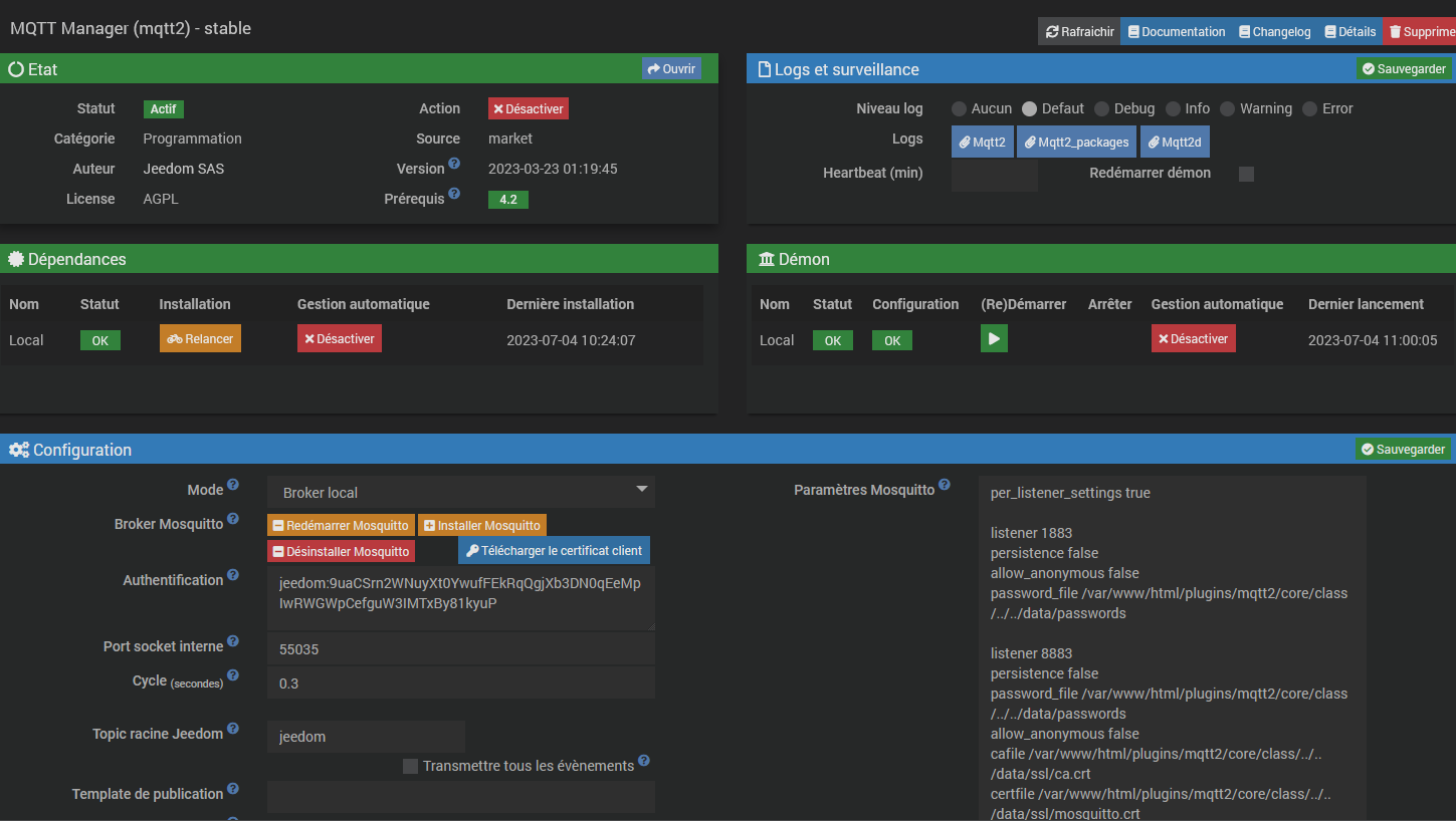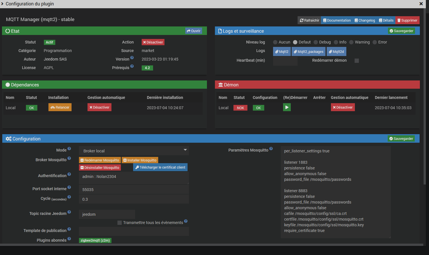 pour mosquito jel’ai depuis le plugin dans la config. Pour les log je ne sais pas faire le texte préformé ![]()