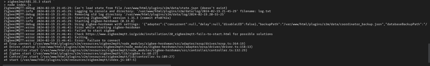 Apres update de Z2M avec version du 19/02/2024 et bien le démon ne démare plus ??