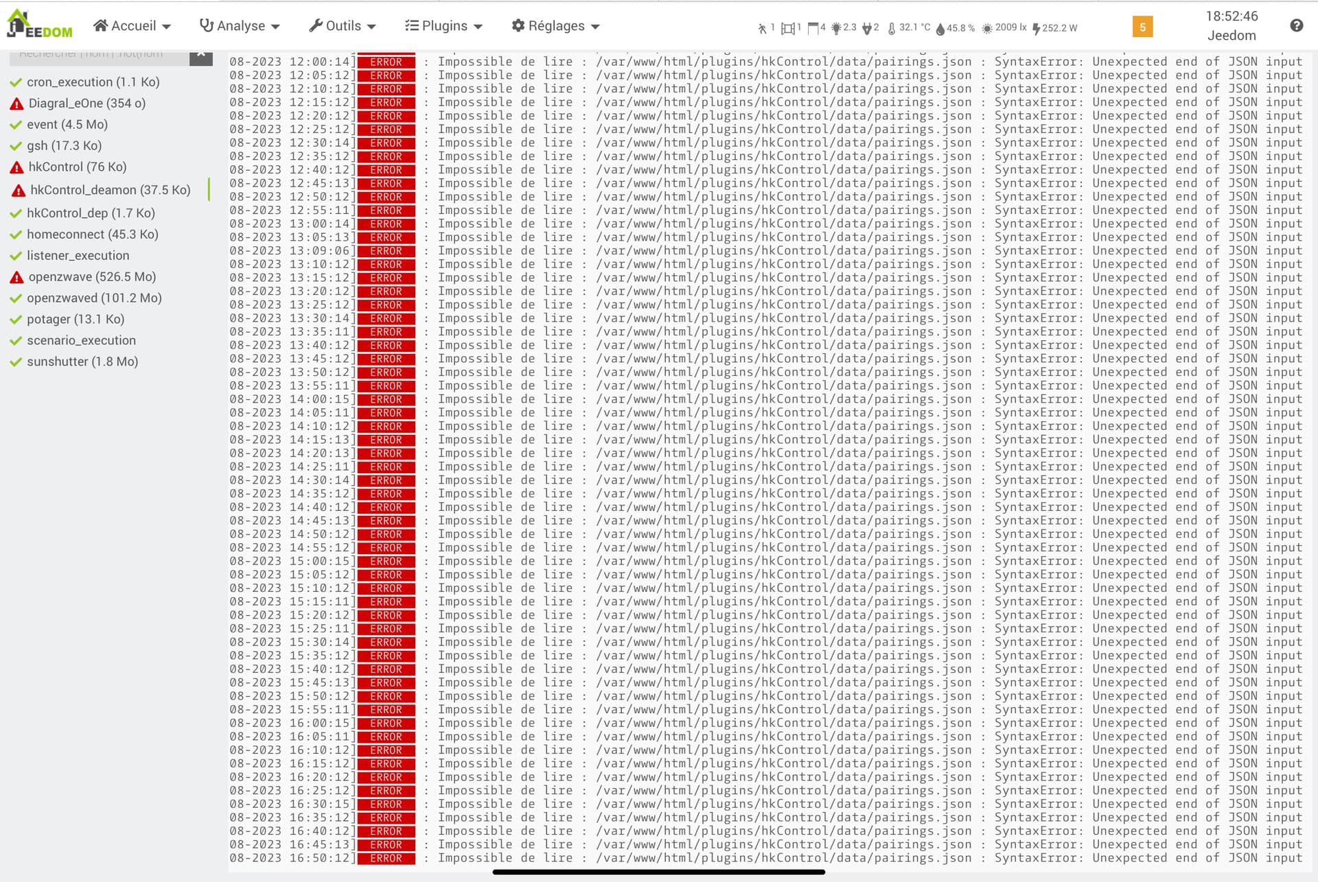 Une incohérence dans l’appairage, nettoie dans la config du plugin le cache. Il faudra reappairer