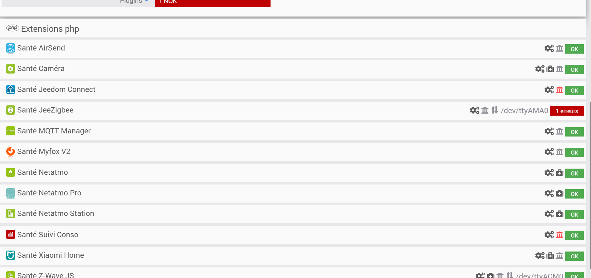 Peut-on avoir l page santé de Jeedom ?
