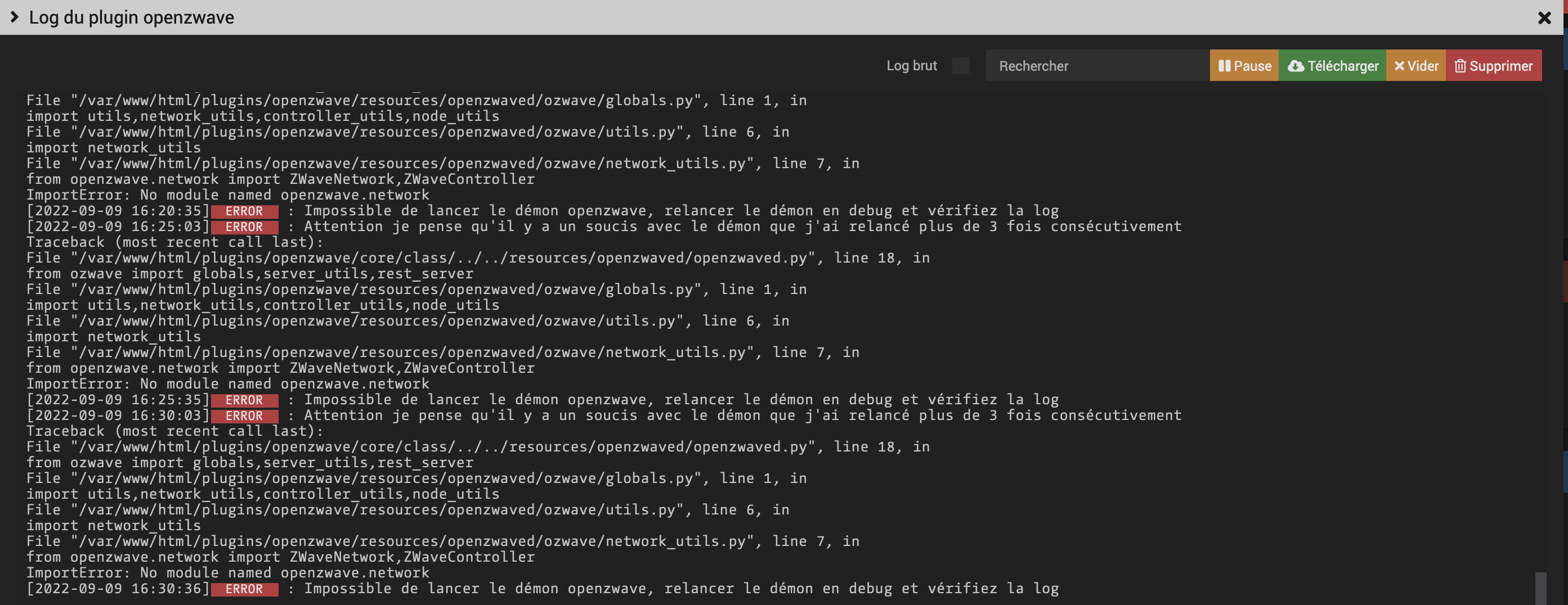 2022-09-08 13:35:10.940 Error, mgr, Manager::GetDriver failed - Home ID 0xfcd4b38a is unknown