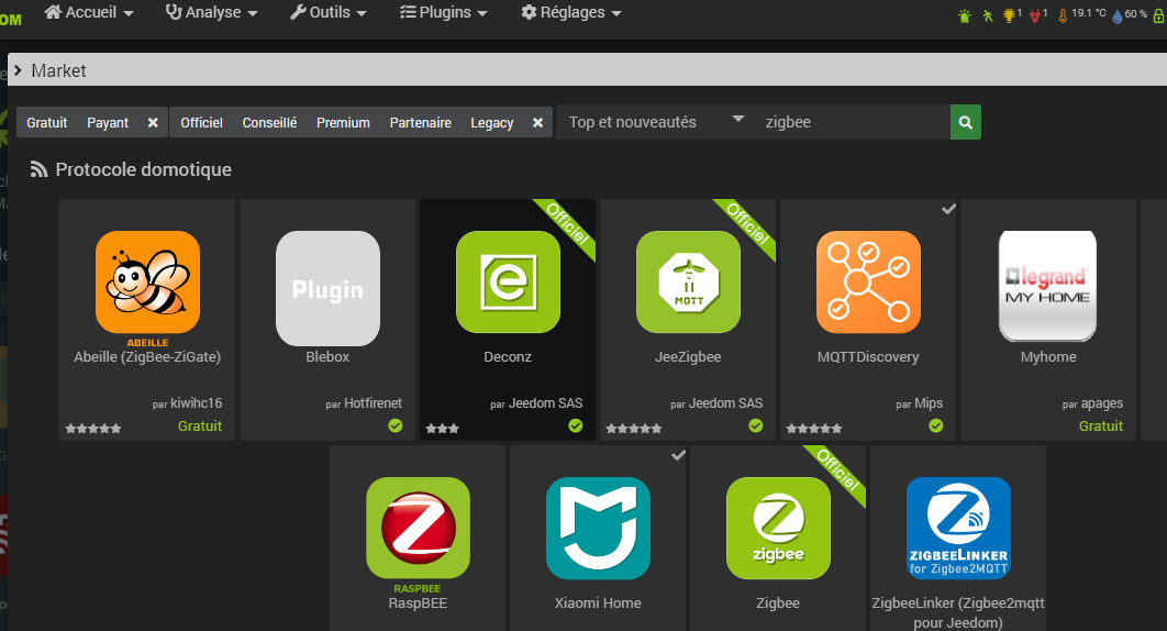 j’ai mis à jour jeedom, et enfin j’ai trouver le plugin jeezigbee sur le market… Je suis en train de l’installer. L’installation des dépendances semble long. Je crains le pire.