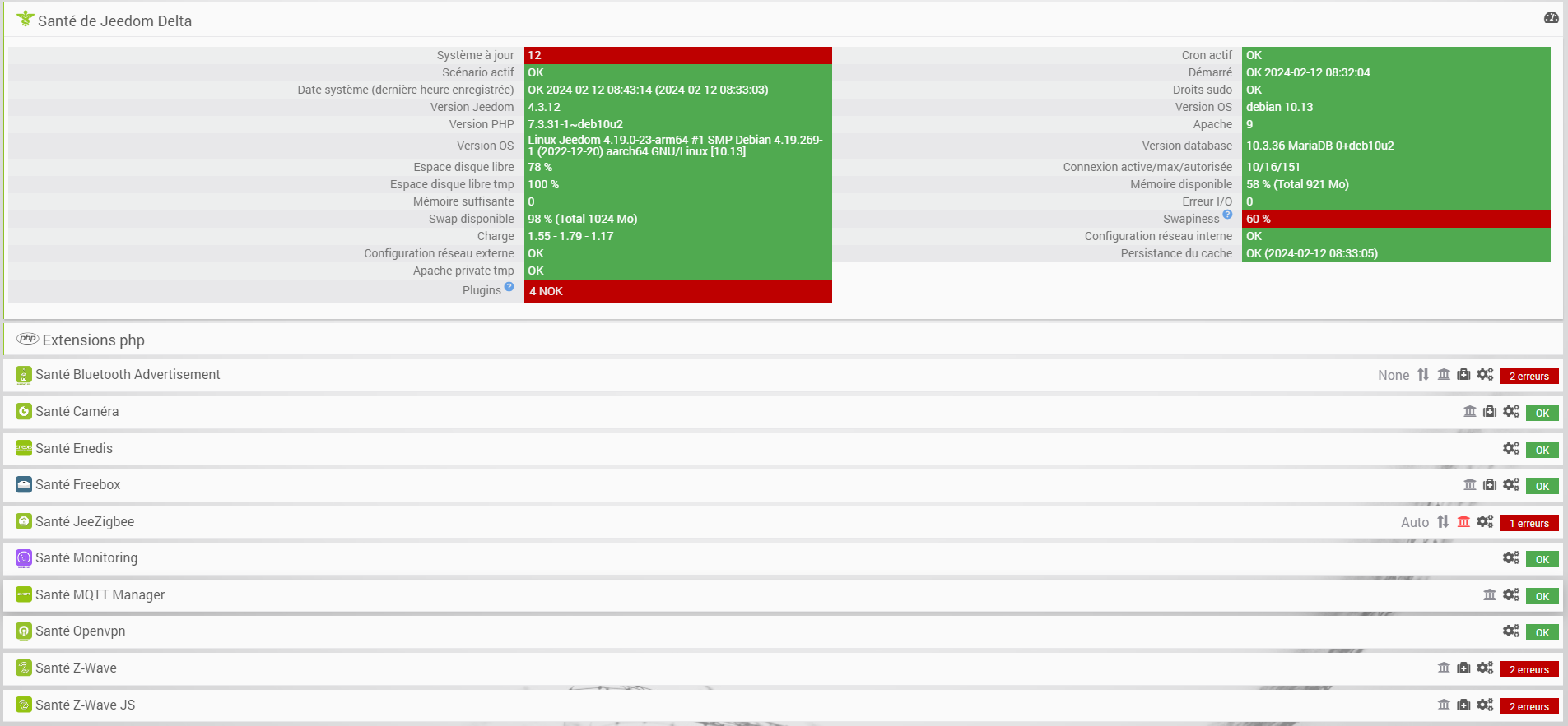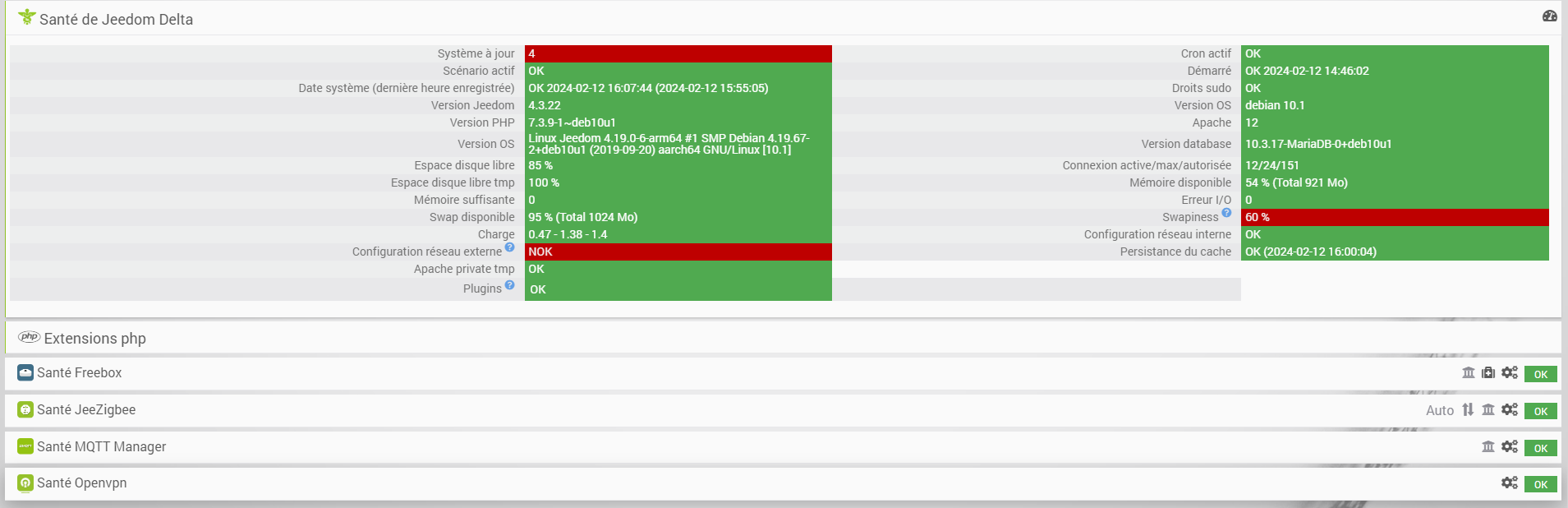 Tout est dans le vert sauf la config réseau, mais je vais me pencher dessus, sûrement un oubli de ma part dans l’installation initiale.