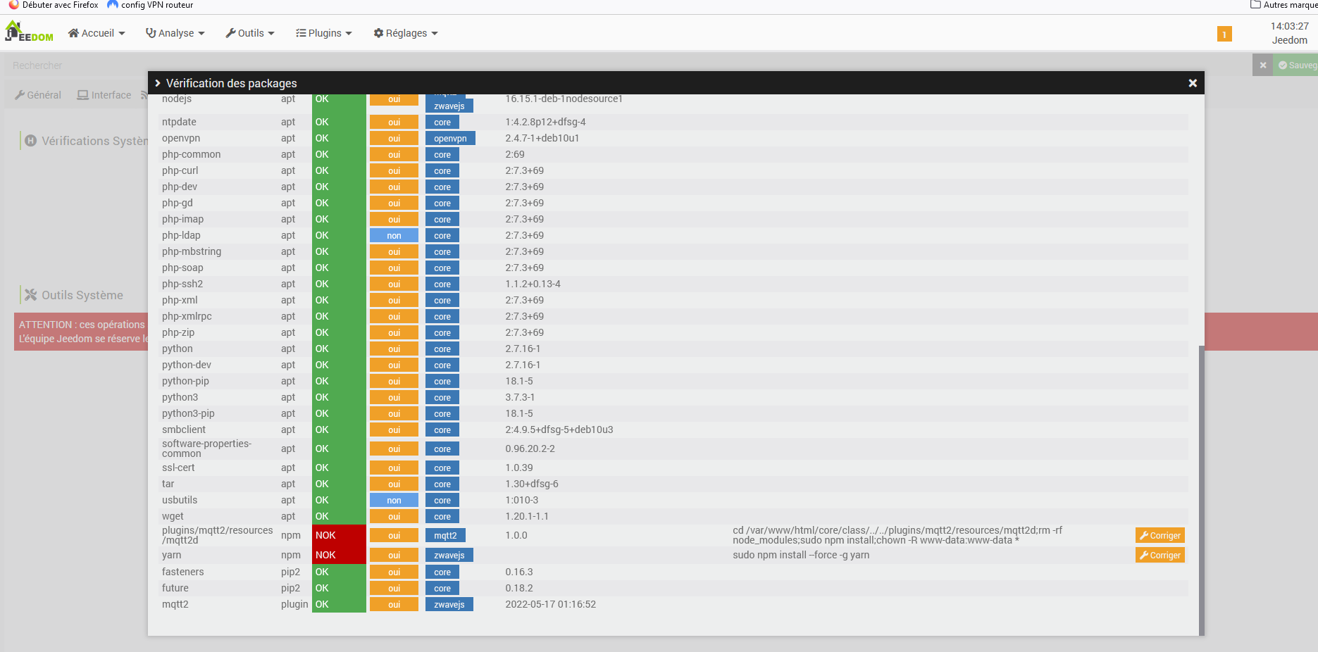 Page Vérification des packages (ou j’ai la même erreur que @meute :