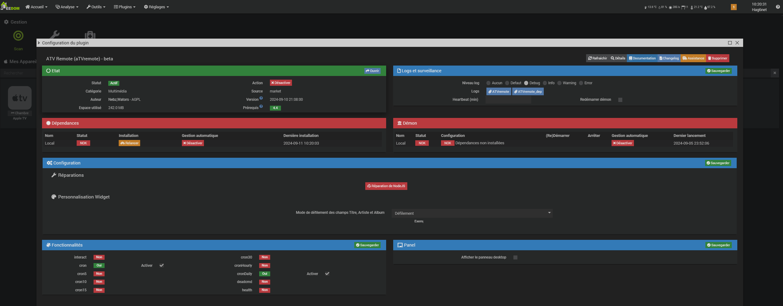 = Jeedom 4.4.16 sur Debian GNU/Linux 11 (bullseye)/amd64/x86_64/64bits aka 'diy' avec nodeJS v18.20.4 et jsonrpc:enable et aTVremote (beta) 2024-09-10 21:08:00 (avant:beta/2024-09-03 01:15:16)
