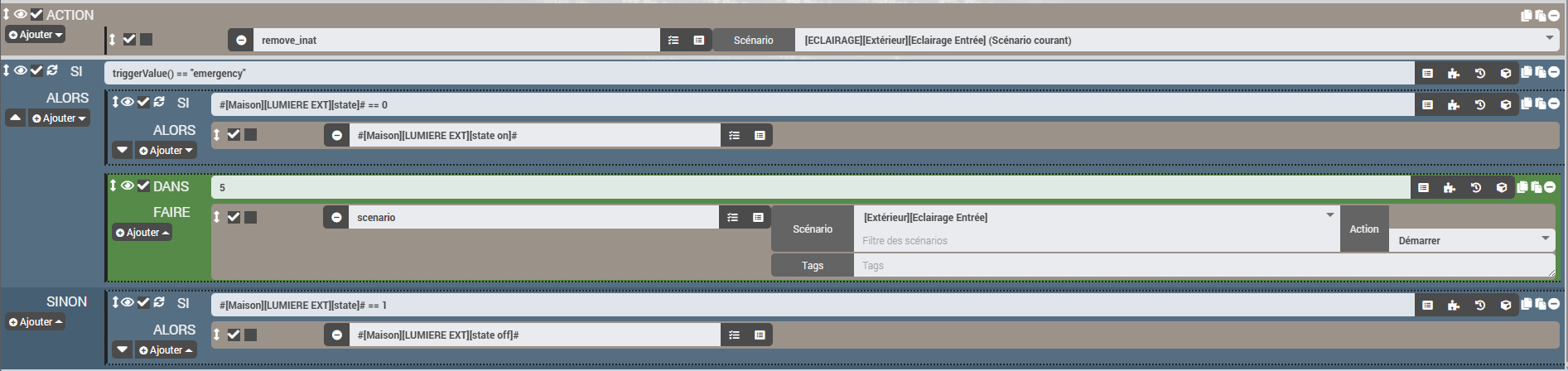 - je considère qu’il n’y a qu’un seul bouton (emergency) qui allume l’éclairage, et que tous les autres (disarm, arm_day_zones et arm_all_zones) déclenche une extinction de la l’éclairage :