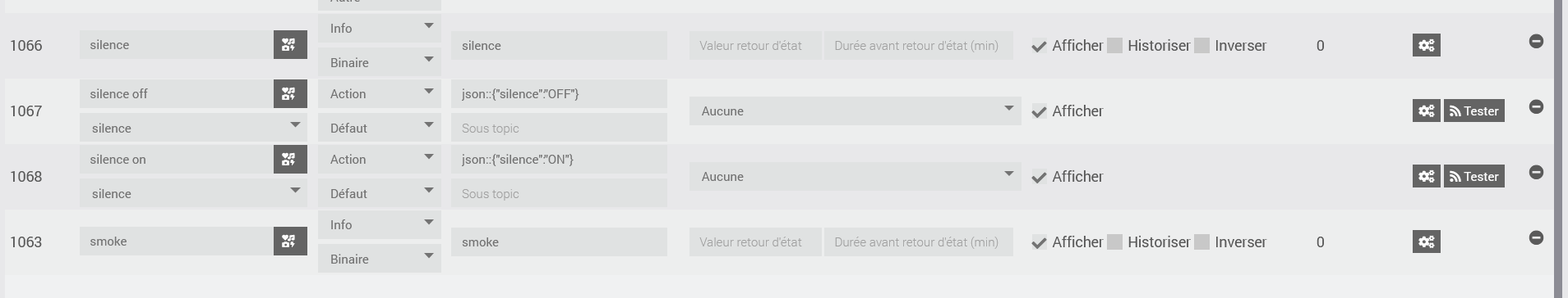 Enfin n’ayant pas moyen de tester le détecteur (si ce n’est par l’appui sur le bouton de test), quelqu’un peut-il me confirmer que la commande smoke est bien celle sur laquelle on devrait normalement déclencher une alerte.